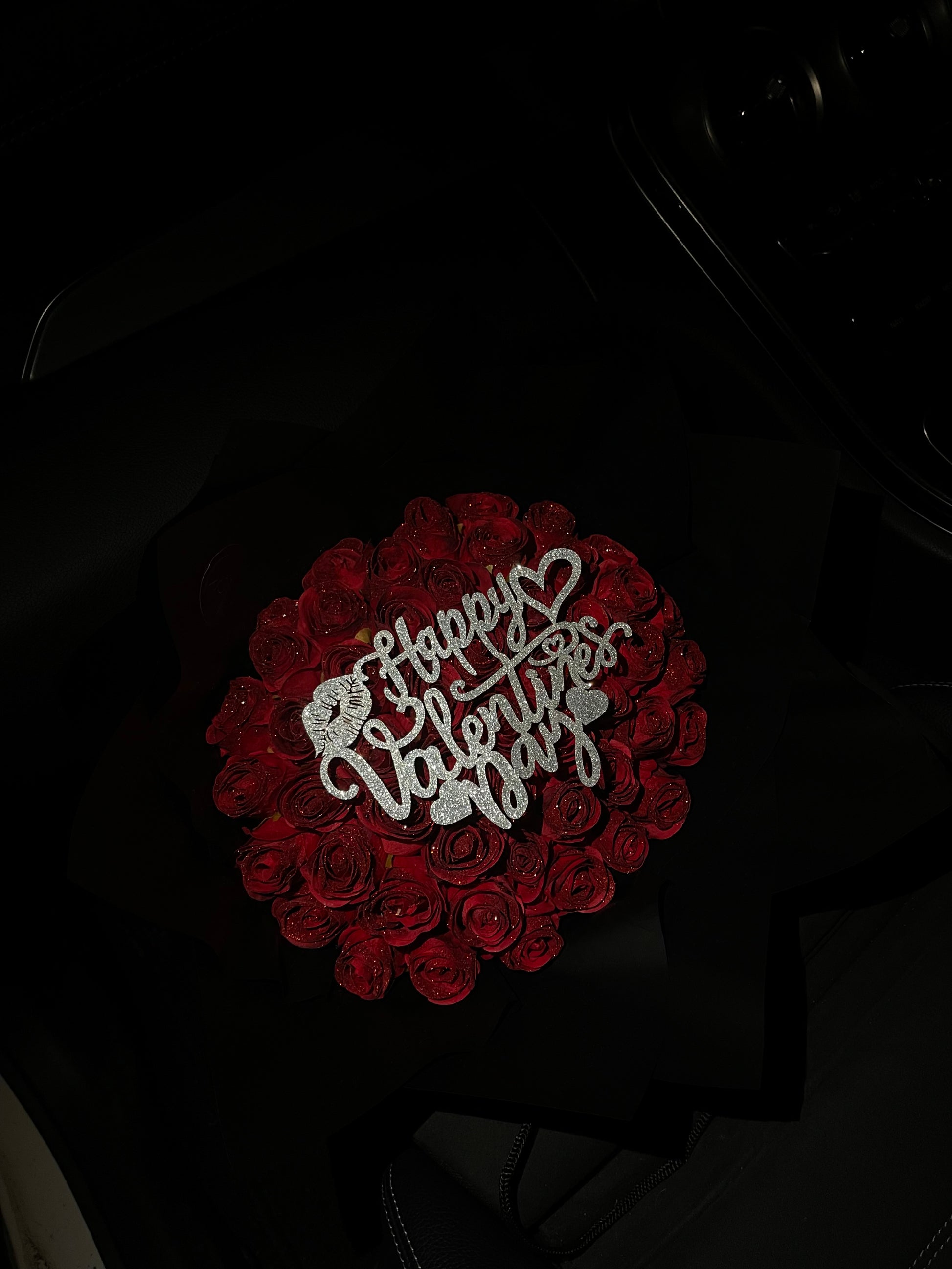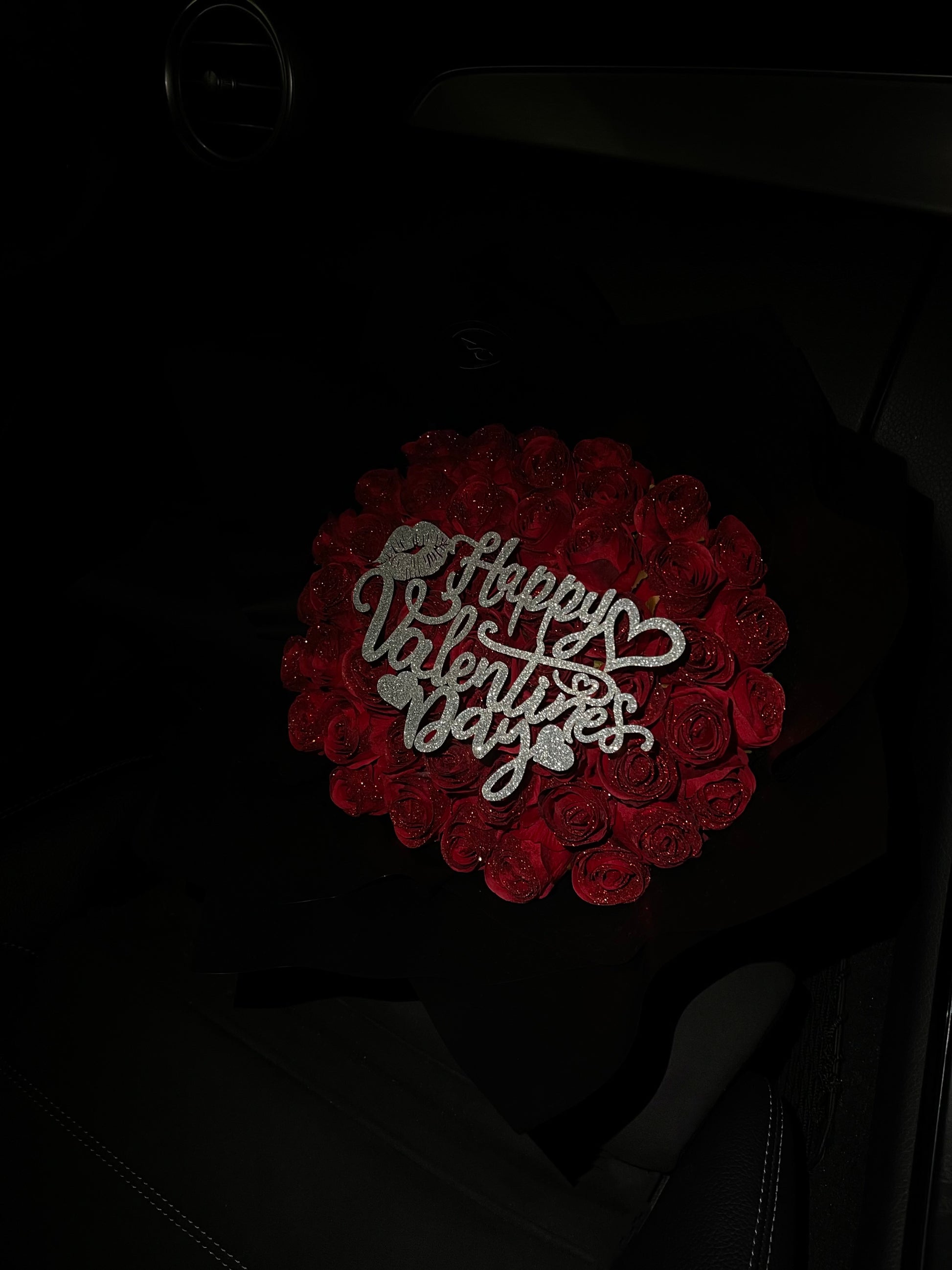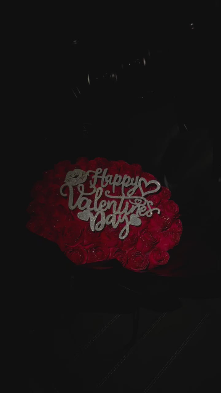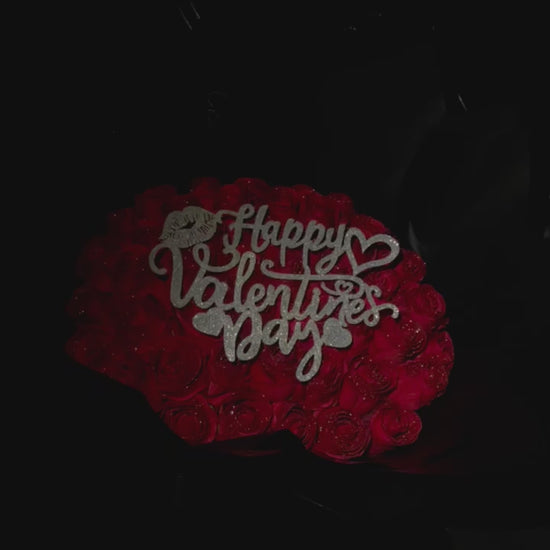 Spread the love with this stunning Valentine’s Day bouquet, featuring 50 red artificial roses, each delicately dusted with sparkling glitter. The vibrant blooms are perfectly paired with a cheerful ‘Happy Valentine’s Day’ sign, making this bouquet a dazzling and heartfelt gift that will fill any room with love and joy.