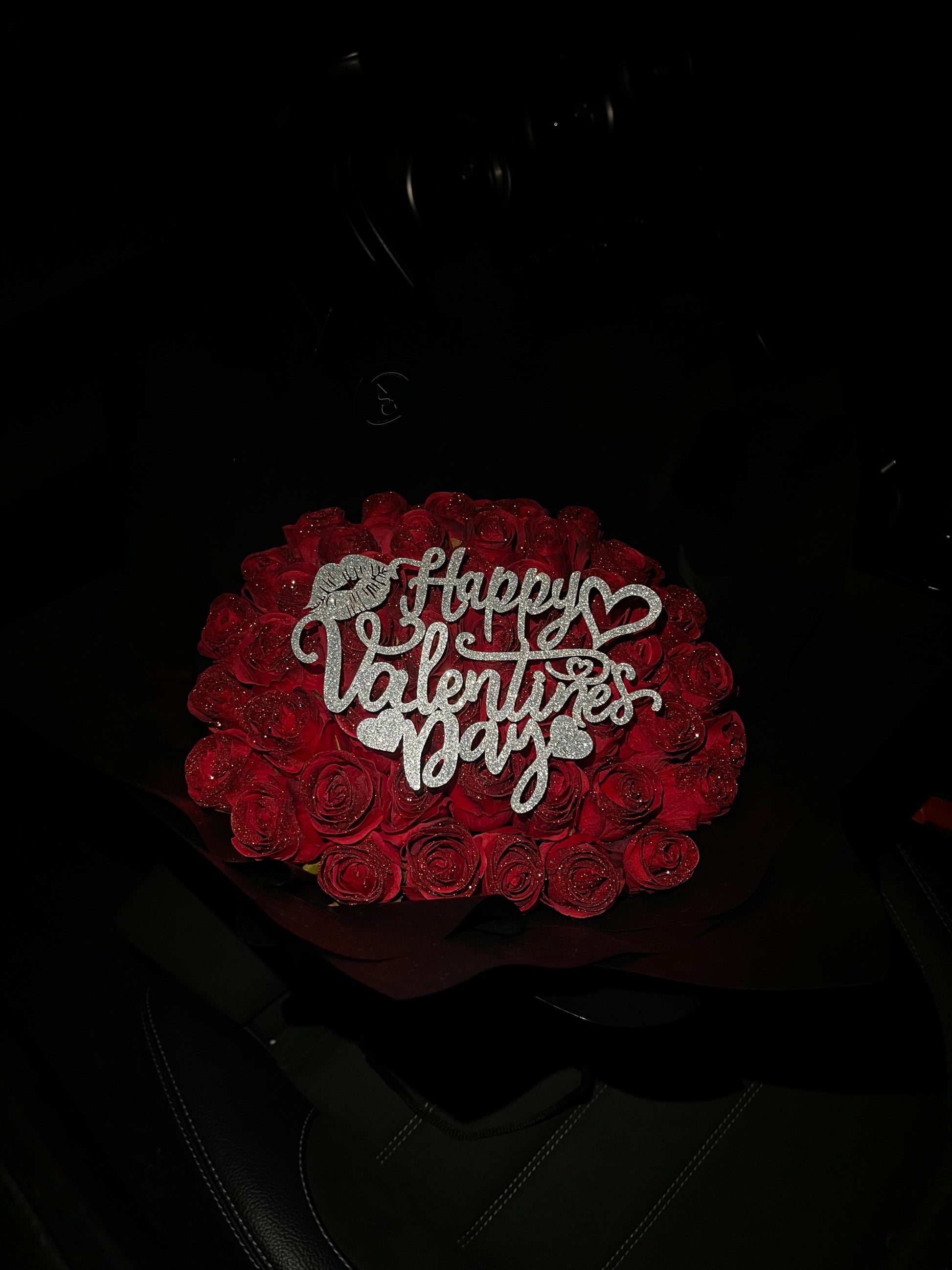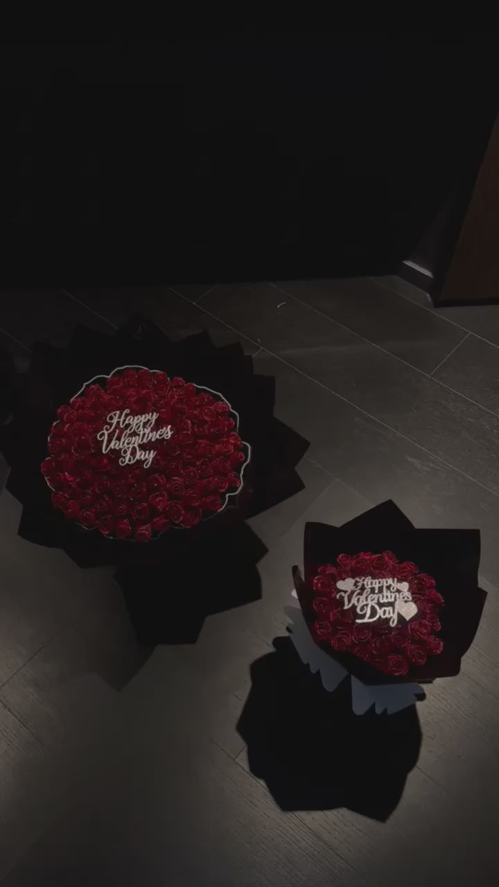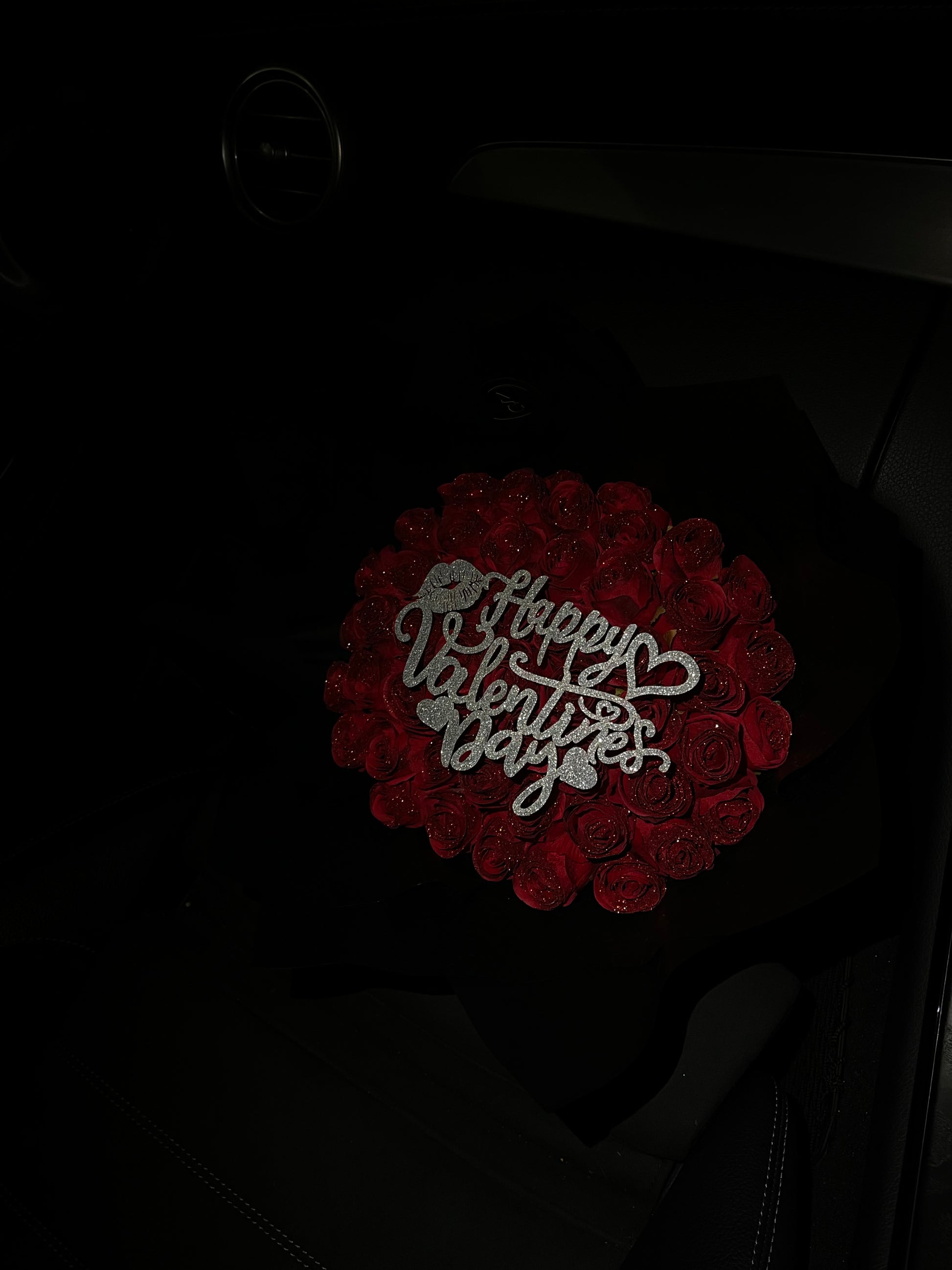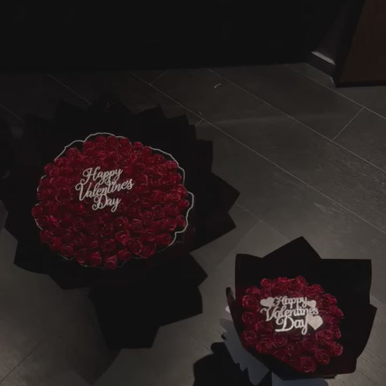 Spread the love with this stunning Valentine’s Day bouquet, featuring 50 red artificial roses, each delicately dusted with sparkling glitter. The vibrant blooms are perfectly paired with a cheerful ‘Happy Valentine’s Day’ sign, making this bouquet a dazzling and heartfelt gift that will fill any room with love and joy.