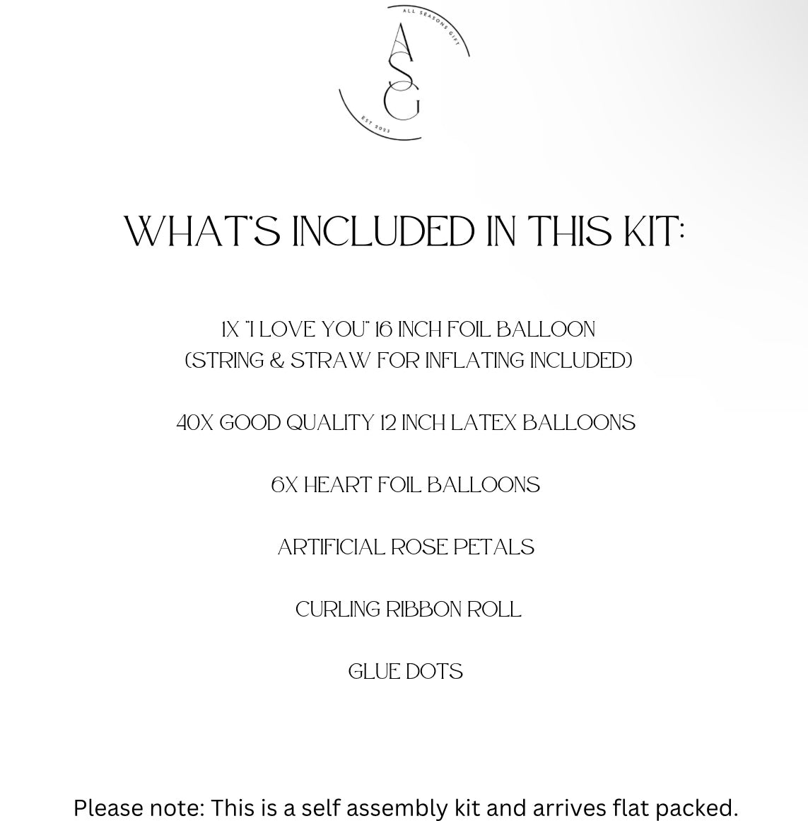 Create a stunning setting with ease! 🎈 Our Self-Setup Hotel Balloon Decor Kit includes 40 latex ceiling balloons, heart-shaped foil balloons, curling ribbon, glue dots, and rose petals—everything you need to design a romantic and unforgettable atmosphere!