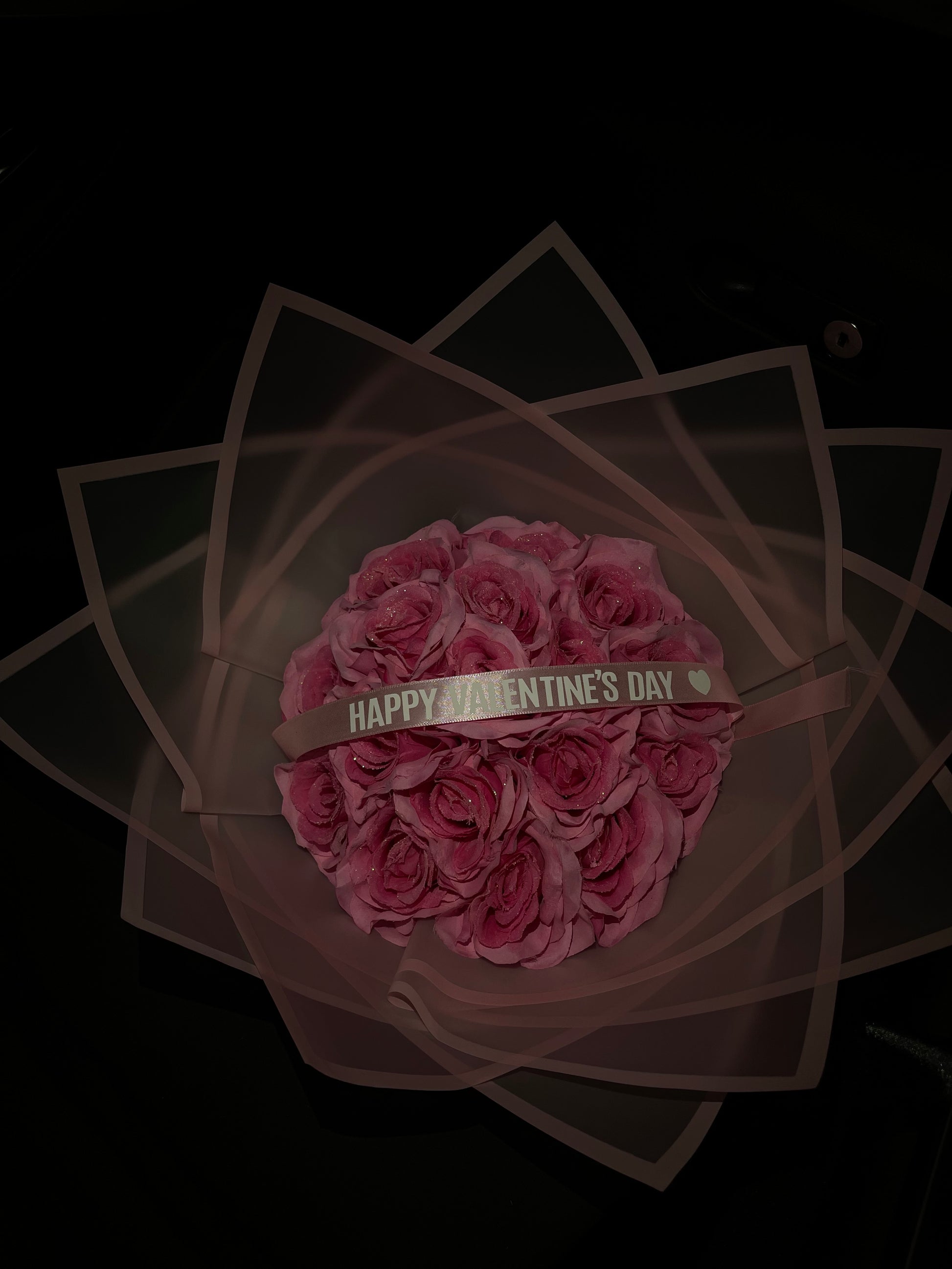 An elegant bouquet of 18 artificial two-tone pink roses, thoughtfully arranged to highlight their romantic color blend. Finished with a “Happy Valentine’s Day” banner or “Happy Valentine’s Day” topper, this bouquet offers a timeless, graceful way to celebrate love with flowers that last forever.